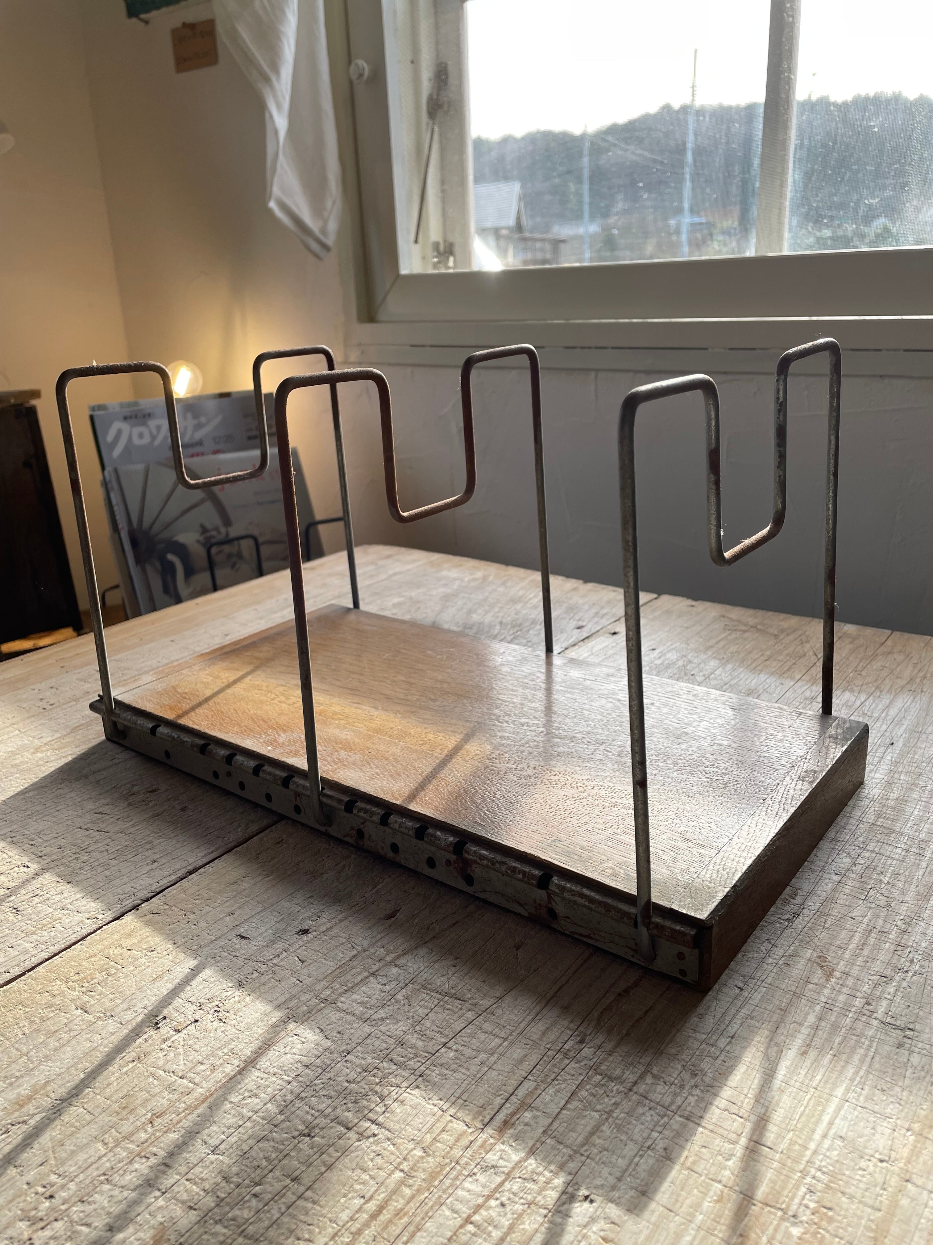 木とスチールのシンプルなデザイン本立てです。